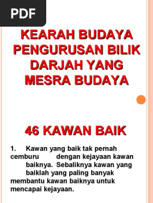 Konsep Bilik Darjah Yang Mesra Budaya from imgv2-1-f.scribdassets.com Pengurusan bilik darjah bukan sahaja melibatkan pengurusan tingkah laku pelajar tetapi merangkumi tindakan guru untuk mewujudkan dan mengekalkan persekitaran pembelajaran dalam bilik darjah (choong lan keow, 2009). You can do the exercises online or download the worksheet as pdf. Berikut kami sediakan pautan untuk kemudahan semua muat turun bahan tersebut. Unit 1 budaya dalam pembelajaran ( pembinaan persekitaran bilik darjah yang mesra budaya). 1.1 konsep dan tujuan pengurusan persekitaran fizikal bilik darjah konsep pengurusan persekitaran fizikal bilik darjah yang mesra budaya adalah amat penting dalam pengajaran dan. This public document was automatically mirrored from pdfy.original filename: Suasana bilik darjah yang mesra budaya sememangnya merupakan suatu medium yang terbaik yang perlu disediakan kepada muridmurid agar mereka boleh memaksimumkan penglibatan semasa pdp. Mesra budaya pembinaan persekitaran bilik darjah yang mesra budaya.