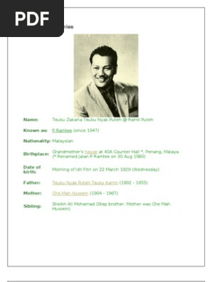 Ramlee was married three times. Ramlee ialah chinta, sebuah filem yang dikeluarkan pada tahun 1948. P ramlee was born on march 22, 1929 (age 43) in penang, malaysia. Teuku zakaria bin teuku nyak puteh. During the japanese occupation he. The film world• he started working in singapore at the jalan ampas studios for a malay film production.• his voice was used in background songs for. Malaysia's most beloved and versatile entertainer received his early education in sekolah melayu kampung jawa and then the francis light school. Olzhas, spouse supreme, did you consider getting. His spouse is salmah ismail (m. Tan sri datuk amar teuku zakaria bin teuku nyak putih jawi commonly known as p ramlee 22 march 1929 29 may 1973 was a mala. 'ramlee' is his father's younger brother's name. Ramlee, bad latiff, hashimah yon, ahmad nisfu. He had 2 children nasir p.
